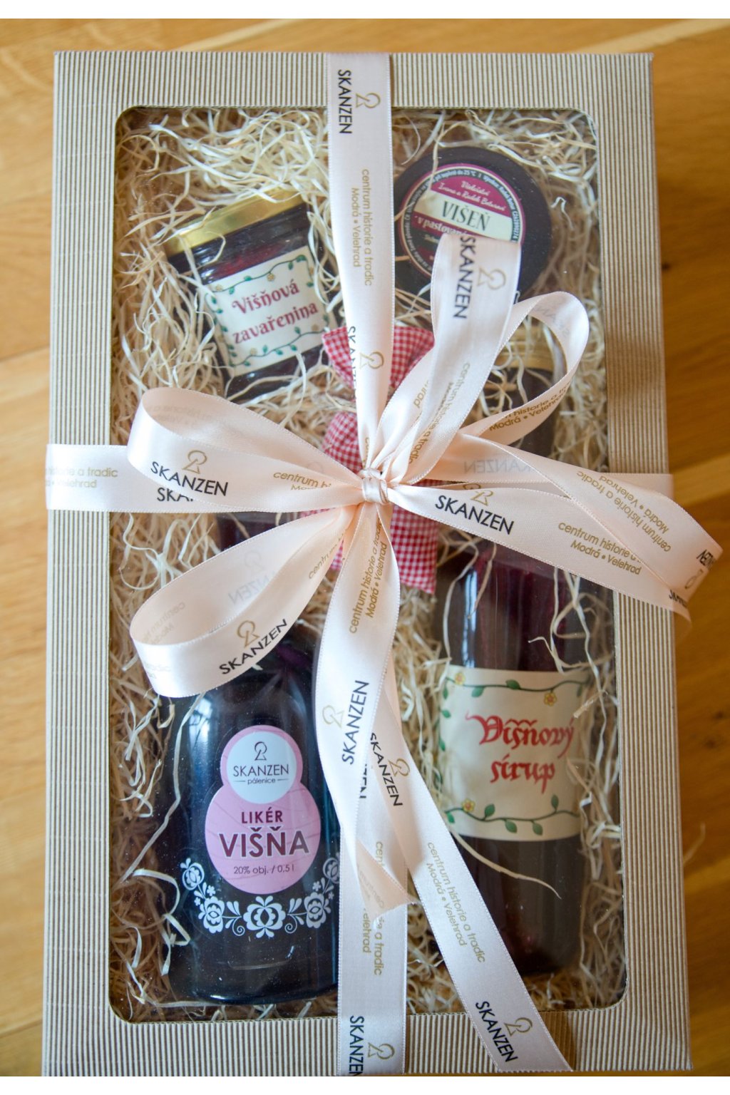 0.5L SKANZEN Likér Višňa 20%, višňový sirup, višňový džem, med s višněmi, bylinkový pytlíček
